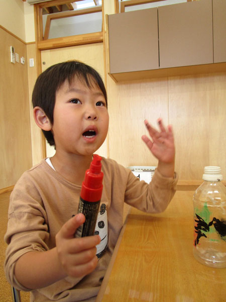 自分で作った「ホーホー笛」、口や舌を使って吹いて、お家でも鳴らして楽しんでくださいね。