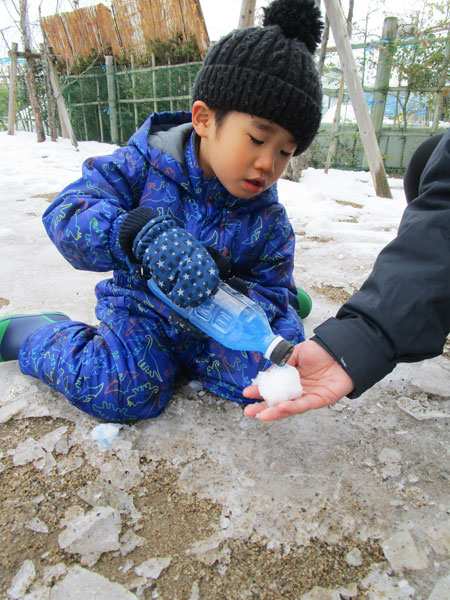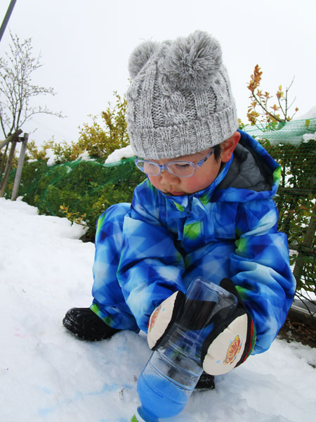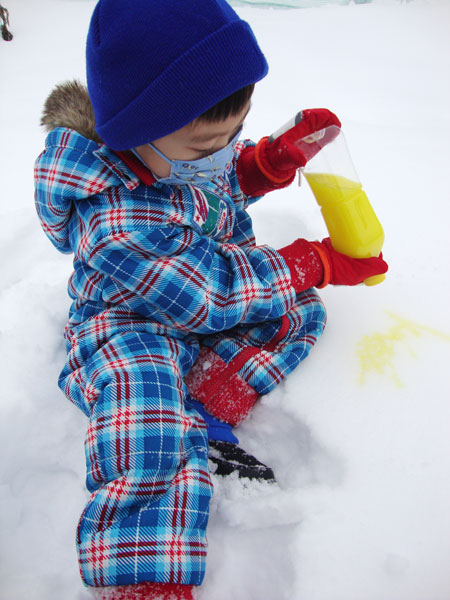 色水遊びでは雪に色がついていく様子を視覚的に楽しみました!