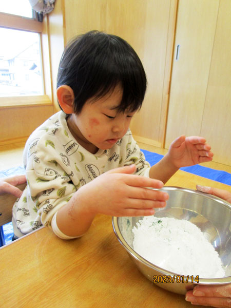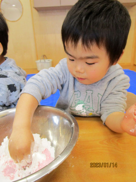 粉が固まっていく感触を楽しみました!