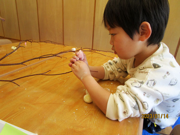 1月14日の土曜開所は「だんご木つくり」を開催しました!