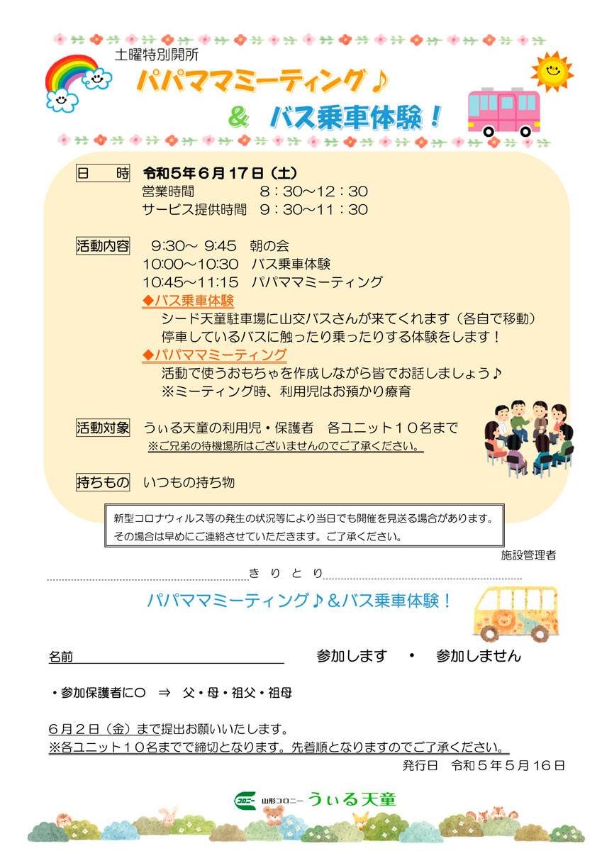 土曜特別開所 パパママミーティング♪&バス乗車体験!