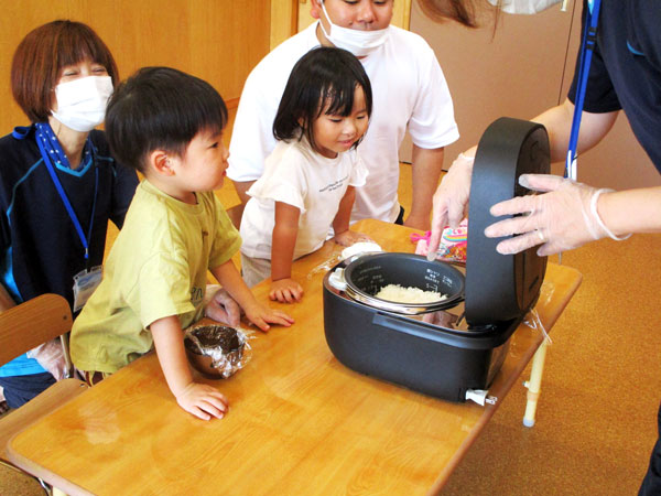おにぎりが出来るまでの工程を米とぎから体験し、感触の違いや作る流れを見たり触れたりしながら、色々な気づきや発見があったのではないでしょうか。