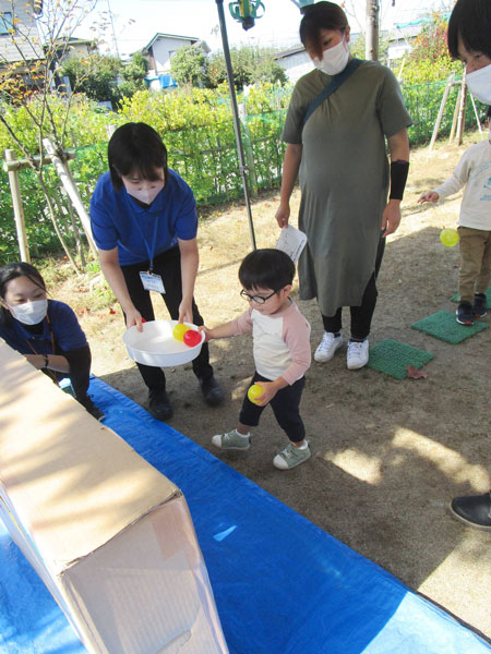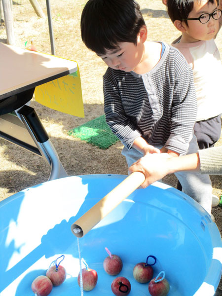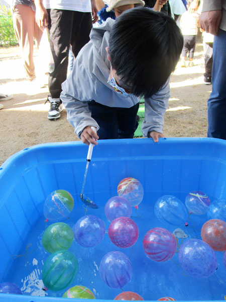 体験コーナーでは、りんご釣り・まとあて・水ヨーヨーがあり、「上手に釣れた!」「まと当たった!」とお子さんたちのニコニコの笑顔がたくさん♪