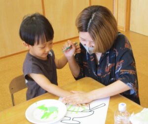 お母さんと一緒にペタッ