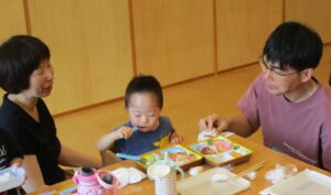 そして、今回は、「親子で給食を食べよう‼」と題して、うぃるのお昼ごはんを一緒に食べました!お子さんが何をどのぐらい食べているのか、また、「これも食べられるんだ!」など、おうちの方にとっても貴重な時間になり、私たちも普段の様子を共有することができて嬉しかったです。