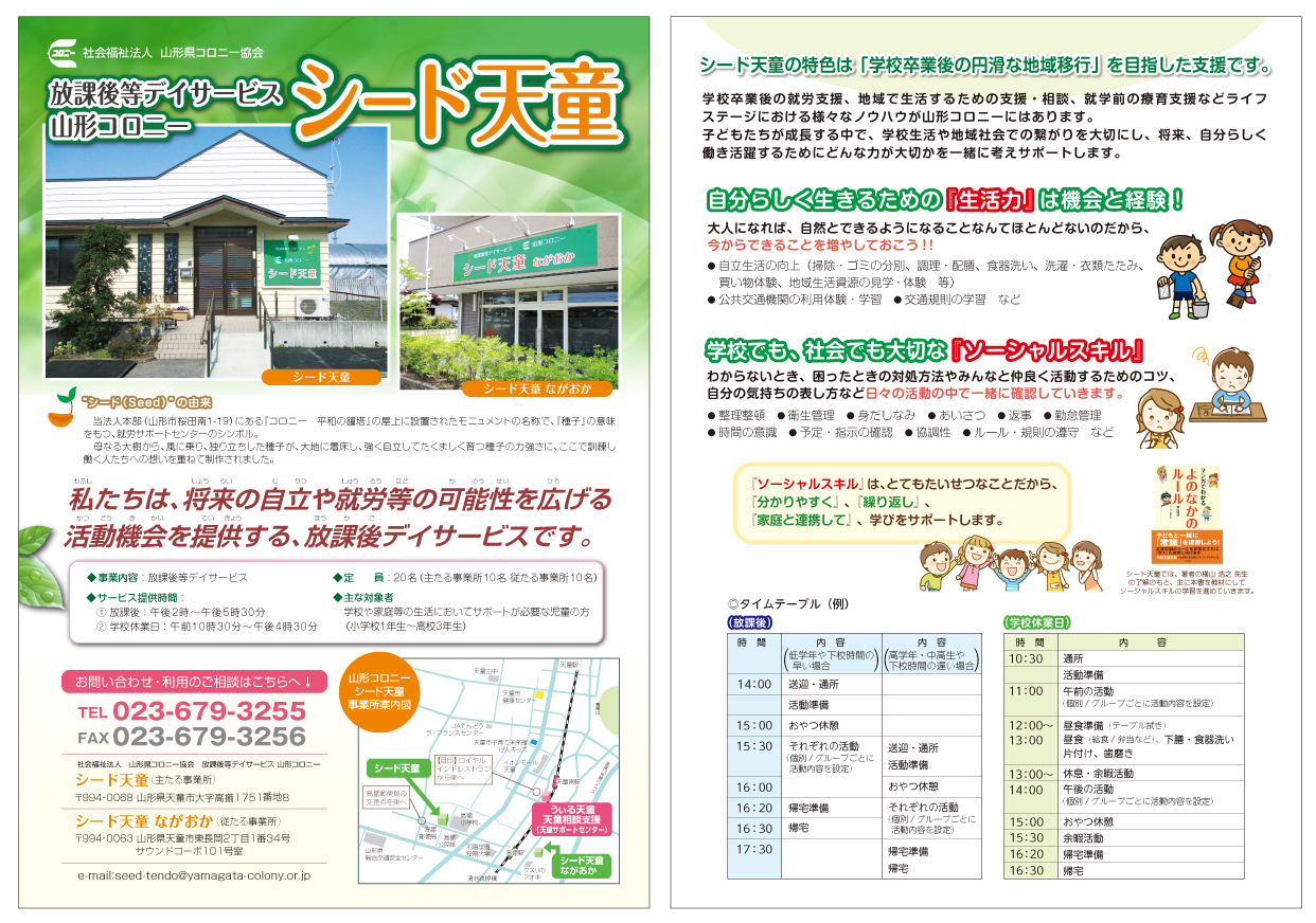 | 住所 | 【シード天童】 〒994-0068 天童市大字高擶1751-8 【シード天童ながおか】 〒994-0063 天童市東長岡2-1-34 サウンドコーポ101号室 |
